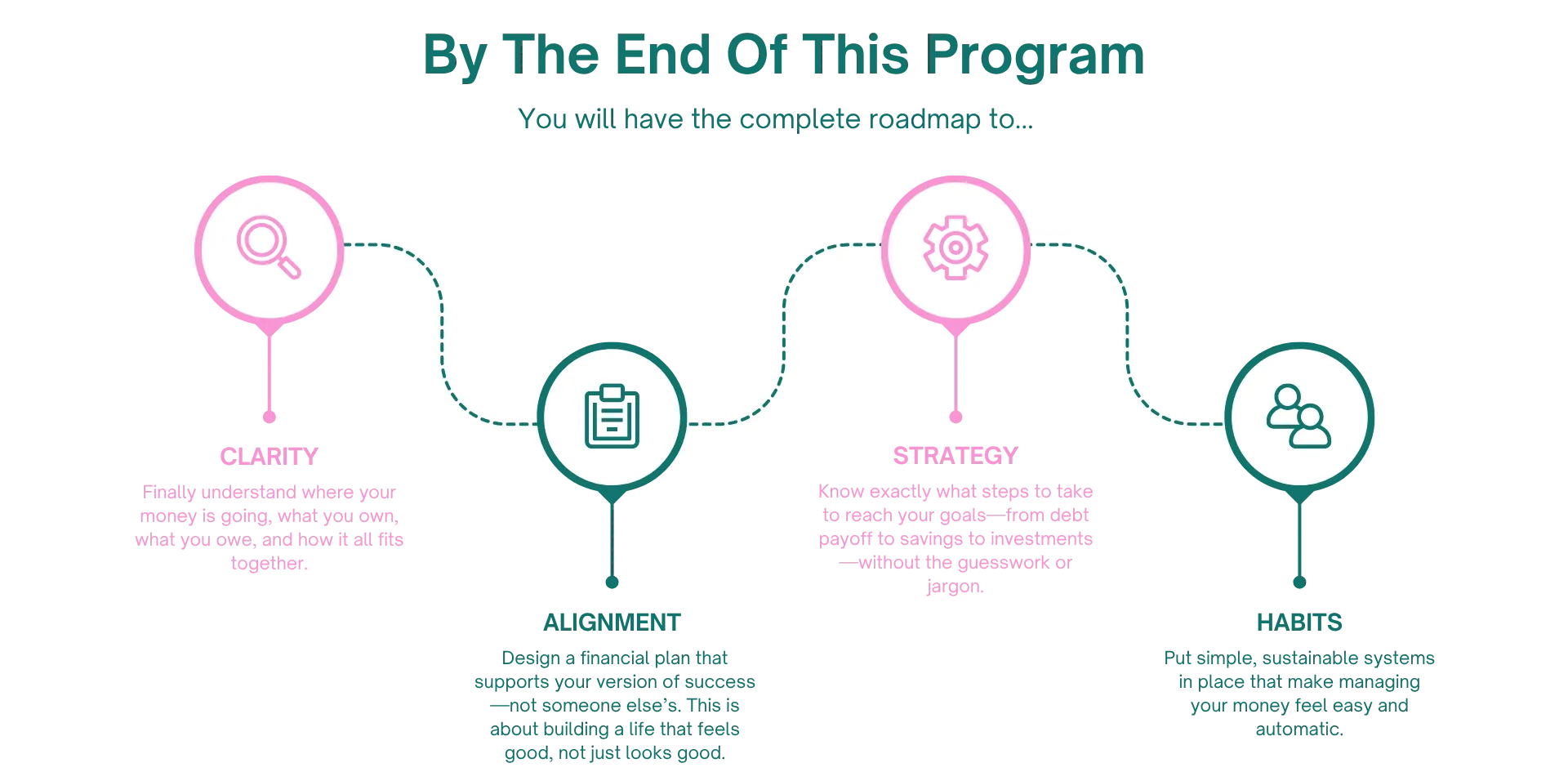 You’ll follow my proven 4-part C.A.S.H. Method™ to create a personalized, Big Picture Financial Plan that aligns with your goals and supports your Dream Life!